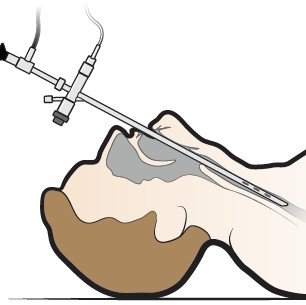Bronchoscopy is a procedure to look directly at the airways in the lungs using a thin, lighted tube (bronchoscope). The bronchoscope is put in the nose or mouth. It is moved down the throat and windpipe (trachea), and into the airways. A healthcare provider can then see the voice box (larynx), trachea, large airways to the lungs (bronchi), and smaller branches of the bronchi (bronchioles).